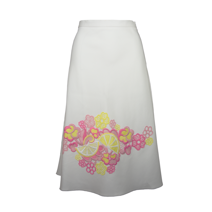 Beautiful, white skirt with embroidery made in Italy by Moschino, synonymous with quality and design creativity.