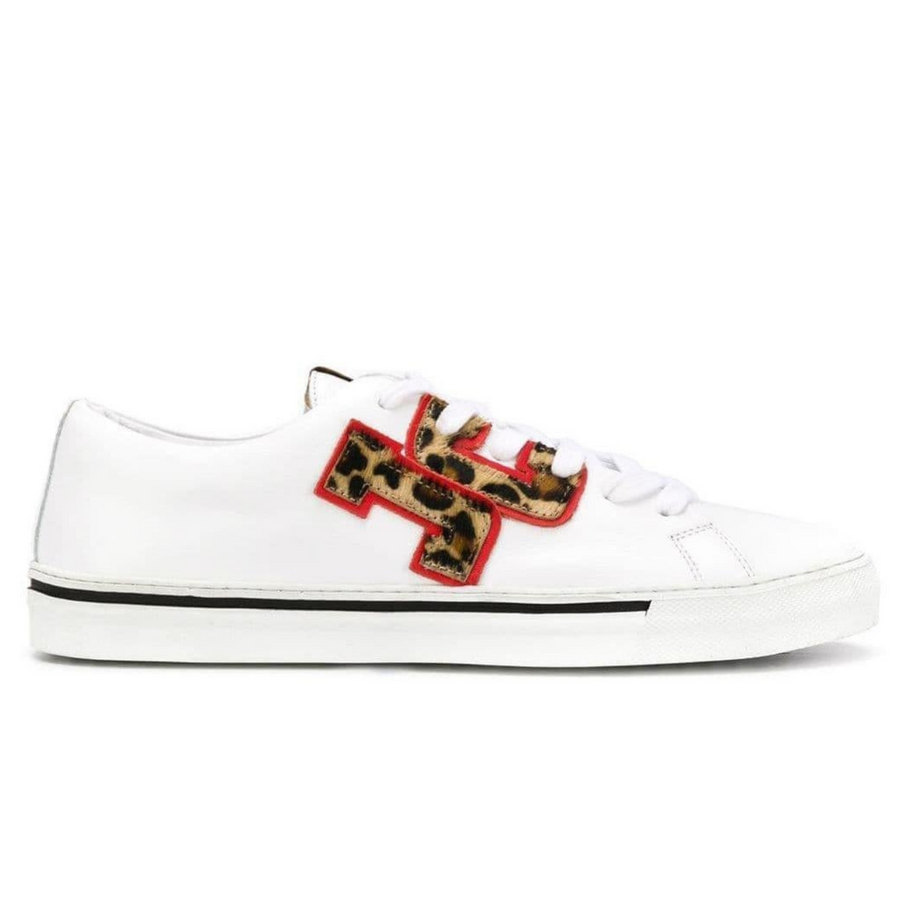 Low-top sneaker in 100% cowhide. This classic-looking piece of footwear has been refreshed with a JC logo in leopard-print pony skin.