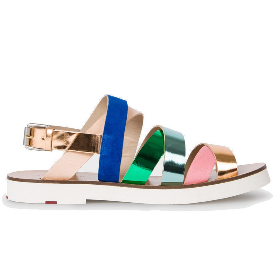 Crafted from smooth calf leather and suede, these 'Rio' sandals feature lightweight rubber soles and multi-colour straps. Paul Smith dust bag also included.