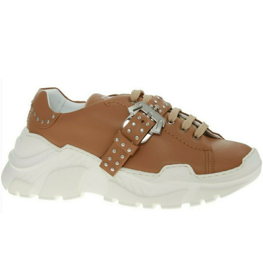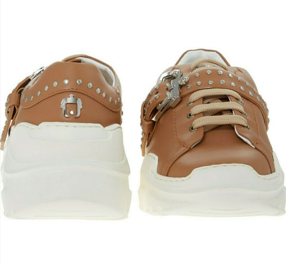 Brown rubber chunky trail sneakers from Paula Cademartori featuring a round toe, a buckle fastening, a lace-up front fastening, a brand embossed tongue and a ridged rubber sole.